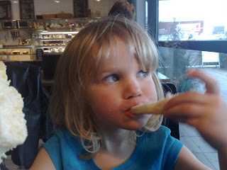 Ute och lunchar på shoppingrundan.